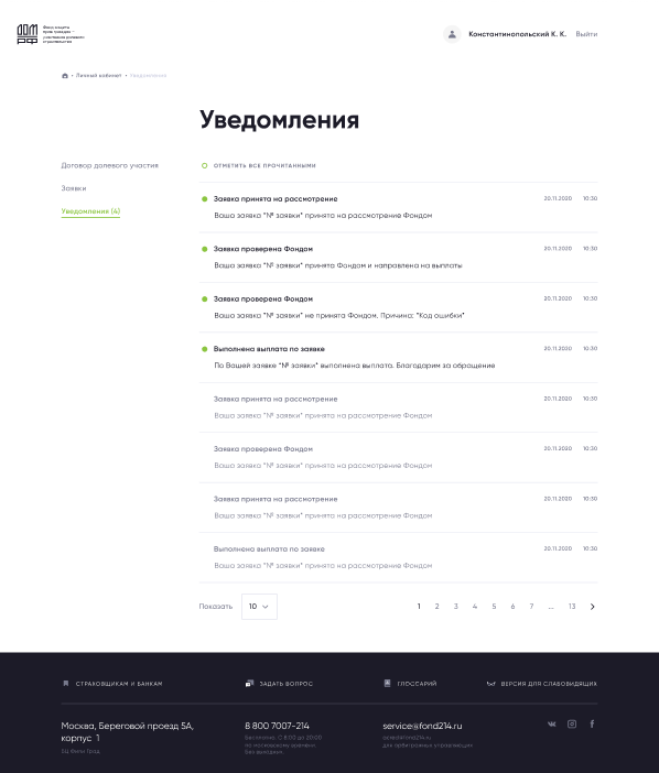 • На основе функциональных требований Заказчика было разработано техническое задание на создание личного кабинета для участников долевого строительства с автоматизированной обработкой заявлений на выплату компенсации.