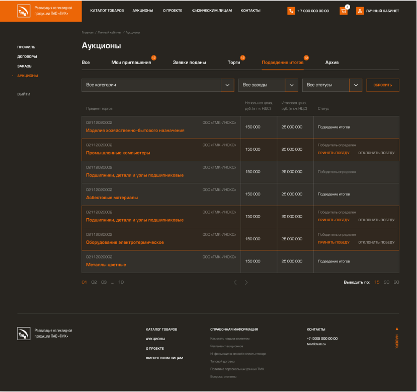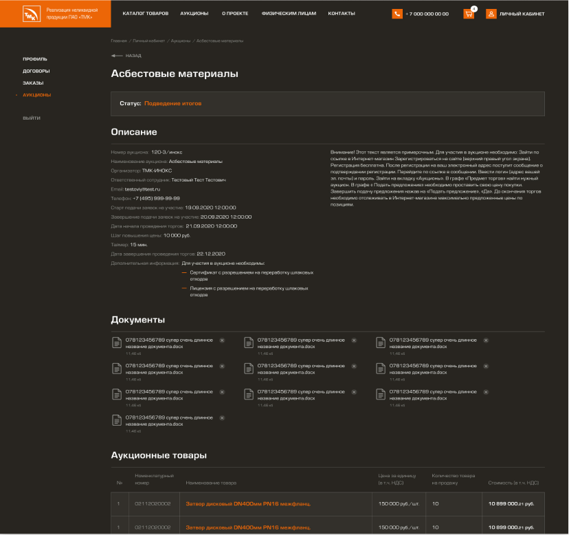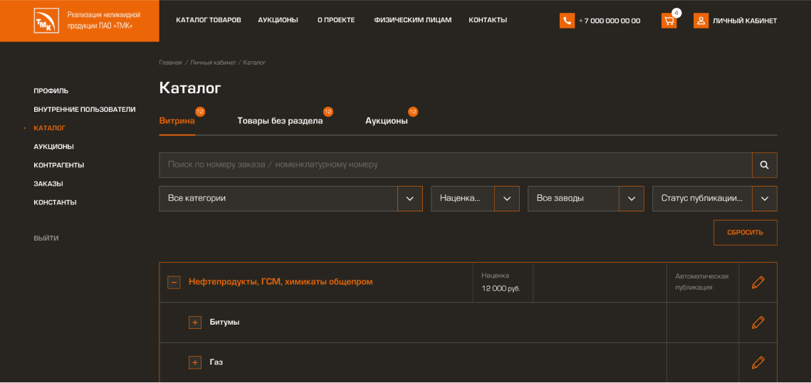 Создание портала/маркетплейса для продажи неликвидной и непрофильной продукции ПАО «ТМК» и проведения процедур электронных торгов.