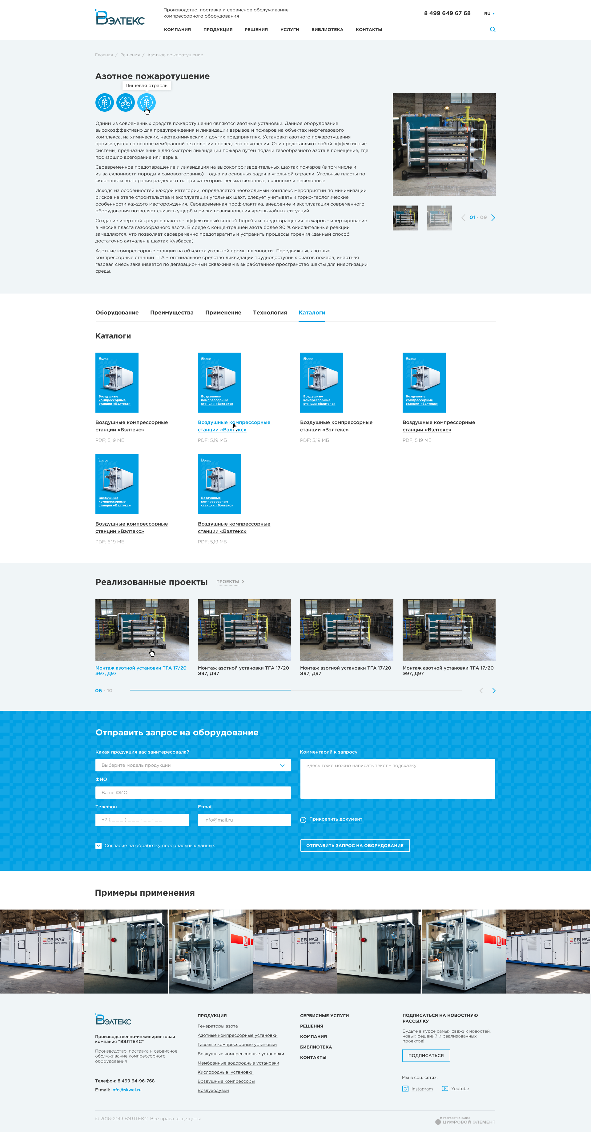 «ВЭЛТЕКС» — динамично-развивающаяся компания, специализирующаяся на производстве компрессорного оборудования премиум-сегмента и предоставлении услуг в комплексе от разработки и производства азотных и воздушных станций до ввода оборудования в эксплуатацию и его послепродажного обслуживания.